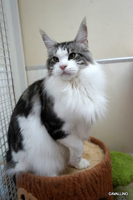 <はじめておいでの方へ>メインクーンキャッテリーCAVALLINOへようこそ。日々の出来事や子猫情報などを綴っています。大家族ですので、わが家の家族紹介No.1とNo.2をご覧下さい。ペトハピ 太鼓判ブリーダー に掲載されました。クリックすると見られます。若い男の子たちの部屋は平和。換毛期のはずなのに、ぼーぼーのリヴィー。あごの下の毛がすぐにヨレヨレになる。「なんでだろう?」お母さんは知っているよ。水の器に顎を乗せるからです。リヴィーは順序に重きを置くやつ。下でオーディンが騒いでいます。「上に行きたい~!」しかし、自分より下っ端を高い所に登らせない。リヴィーが譲るのはこいちゃんだけなんです。ちゃんとわかっているのかなあ?オーディンが大きくなっても変わらないのだろうか?「ぬ~~ん」いや、そんなに威張らなくっていいから。いつまでもこうやって暮らせるといいんだけれど。絶対にある時期からもめごとが始まるんですよね。本日のお・ま・け♪「かえるぺったんこ」ちっちゃいちゃんとマーヴェリックも今は交代で部屋を使っているし・・・・ ランキングに参加しています。バナーを2つポチッと押していただけると嬉しいです。頂いたコメントは楽しく拝見させていただいております。ブログを書く励みになっていますが、個別
