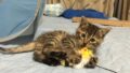 岩合さんのテントとオモチャの組み合わせが気に入っているアミ。