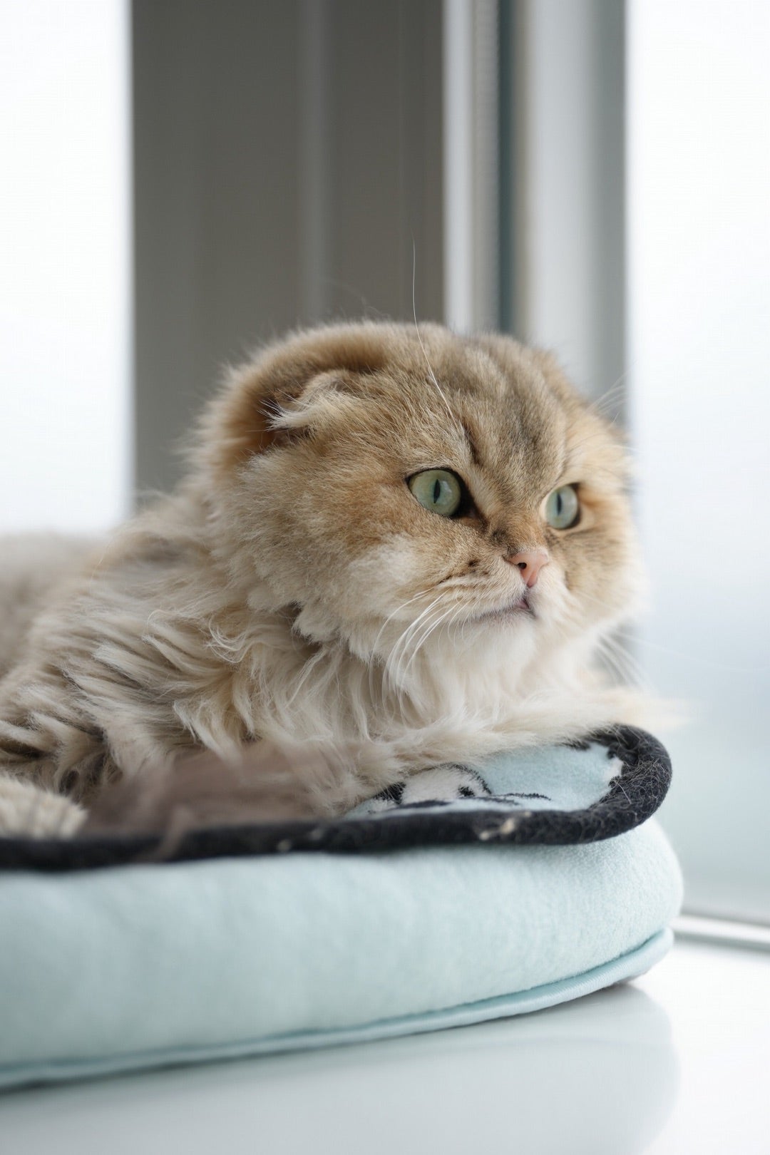 どんよりしたお天気だけど窓辺のベッドからお外の景色を楽しむレオくん。 巻き舌のあくびがもわぁ~んと出て、 ガオーーーッ! ライオンみたいなお口になります。 そんなレオくんのところに青い幼稚園帽子が来ました。 コロンママ「4月はこんなお帽子をかぶった子をよく見かけるのでレオくんもかぶってみましょう。」 かぶったはかぶったんですけど、顔がカメラを見てません。 レオくん「?」 お帽子がうしろに行っちゃいましたね。 今度はひもを顔の前にして乗せてます。 ひもが邪魔そうだけどなぜか全然気にしてないのがジワジワ来ます。 これもやっぱりすぐに落ちちゃいましたね。 3回目のチャレンジで成功して、 幼稚園帽子をかぶりこなすレオくんです。 『ひなたぼっこのお供に』 朝からまぶしいお日様を浴びてひなたぼっこ中のピノくん。 お目目