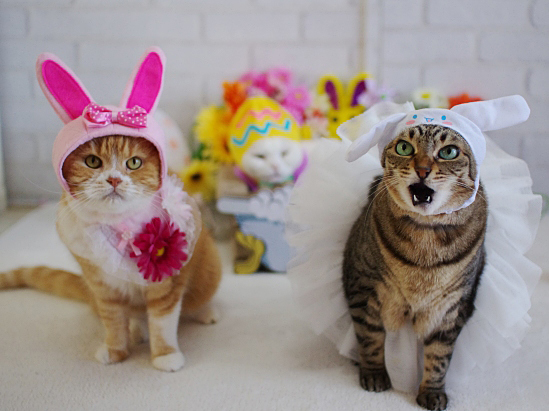 昨日イースターだって事すっかり忘れてました。っていうか今年はイースターの事飛んでました(笑)懐かしいイースターショットを。ぷぷとチョコ。後ろにタマさんエッグ🥚がwwクーちゃんのピンクラビット🐰可愛い~~●○●○●○●○●○●○●○●○●○●○●○●○●○●最近吐き気がよく出てたキララですが・・・土、日は吐き気止めも無しでも吐き気もなく元気に過ごせました。『開けてーーーっ』強制給餌と強制給餌の間に出す、美味しいスープのウェットも変わらず自力で飲んでくれています。湿気が多かったり寒暖差の影響が出たのかな?キッチンで鳴いてたらちょうどフードマンが・・・ただ撫でただけだけど、明らかに嫌な顔にそして速攻移動( ´∀` )気候もしっかり暖かく安定してくれてキララもまた好調が続いてくれますように。おもち君が長く遊んでくれてた羽根の玩具、最近は飽きて全然遊ばなくなったので56nyanさんで【ダ・バード】を買いました。まずおもち君に振ってみますこの大きな羽根がポイント。こりゃ良さそう‼って思ったら・・・あんこが先に大興奮しちゃってー(笑)みてください。すごい飛んでますーっ新しい玩具を見ると、もう止まらないほど興奮するあんこは、玩具に飛びつき体当たりで怖いんです。だからテンションの高いあんこが苦手なおもちお『僕はここで避難するよ。遊ばないよーだ』初日はこう