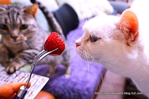 主のほうをじっと見てるルナとラム。主の食べてるイチゴを見てたのね?www食べるのかと思ったけど、匂い確認しただけだった。イチゴだけじゃなくて、あちこち匂い確認。猫の確認方法の一番はやっぱり匂いなんだね!ちょっとした模様替えをしたら、早速確認しにきたラム。でもそれは床に置いていたキャットボウルで、新しい物じゃない!なのに、猫って場所が変わると「こんな物ができた!」って思うらしい。新しい寝床ができたとすっかりご機嫌で毛づくろいを始める。ホントにそれは数年前からあったんだけどなぁ…床に置いていた時は見向きもしなかったくせに。↓Youtubeショート動画模様替えしてベッドなどの置き場所が変わっただけで喜んで使ってくれるんです!ルナは、その下に置いた爪とぎベッドに入っている。こちらも、新しい物が来たと思っているみたいだ。すっかり気に入って、ここで寝ようと思ったらしい。さっきまで気づいてなかったレオンが、キャットボウルを調べに来た!いつもは高い場所に乗りたがらないレオンが居るので、ルナは不思議そうに下から見てる。レオンもやはりこれは今までになかった物だと思っているらしい。↓Youtube動画ちょっと高い位置に置いたから、見晴らしが良くて、周りを見渡せるからなかなか良いみたいですねぇ。場所を変えただけで、新しい物をゲットしたと思ってもらえるのは好都合なんだけど、またすぐに飽きちゃうんだろうな…&