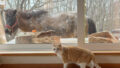 窓辺でまったり日光浴をするユウ。ルークの桜が続々開花中なので