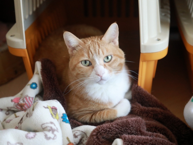 毛布を入れてあるお下がりキャリーはユウの好きな寝床のひとつ。