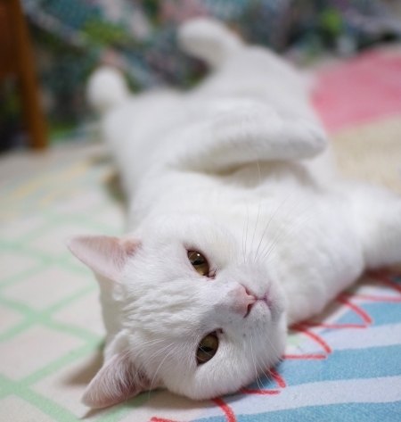 お『僕の定番の恰好だよ~。今日も暑いなー』おもちくん年中、へそ天してますが(笑)こちら火曜日は午後から凄く暑くなりました。北側の猫部屋の窓も開けるほど。最近暖かくなったといっても、朝晩はヒンヤリなので廊下のドアは閉めていました。でも火曜は久々に夜もドアを閉めず過ごしたんですよ猫部屋が以前から大好きだったおもちはほぼ入り浸り状態になって💦夜は寝てる私の上に乗って甘えてくれるのが最近の日課だったのに・・・この日はお布団敷いても来てくれず( ;∀;)めっちゃ寂しくなりました。お『この部屋は涼しいし最高やな』↑夜中(北側の部屋で涼しいの)夜もずっと猫部屋のザルベッドの中でした。お風呂から出た後も猫部屋でクネクネダンスで甘えてまーす。(チョコは猫部屋にほぼ来ないから)お『ライバルもいないし最高やなー』最近凄く甘えん坊だったし、ドアを閉めていた時は常に見える所に居てたのでなーんか猫部屋に入り浸れると凄く寂しい気分なのでした💦(でも昨日はガクンと気温下がったのでまたドアを閉めましたよ。)久しぶりにグローブ型のブラシを出して見ました。フードマンが休みだったのでブラッシングして貰いましたよ。↑何するんやっ!って警戒心バリバリの顔ですが・・・マッサージ好きなおもち君『あれ?気持ちいいかも』完全にうっとり顔になってましたウフフ。最後はお腹まで出して(笑)ちなみにこのブラシ