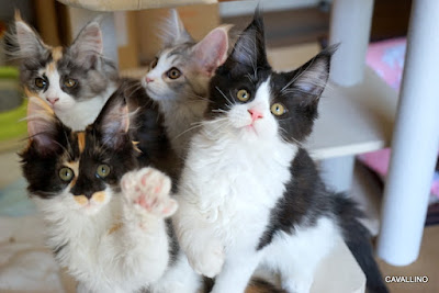 <はじめておいでの方へ>メインクーンキャッテリーCAVALLINOへようこそ。日々の出来事や子猫情報などを綴っています。大家族ですので、わが家の家族紹介No.1とNo.2をご覧下さい。ペトハピ 太鼓判ブリーダー に掲載されました。クリックすると見られます。しじみっ子もカメっ子も子猫らしくやんちゃ。変わりはないはずなのに、しじみっ子の写真が撮りにくい。しじみっ子の部屋の方が倍以上の広さだからかなあ?クモの子を散らすようにあっちこっちへ・・・・・で、昨日のタワーを買ってみました。「イイヨォ~!」まあ・・・成功?これで集合写真(寝ているとき以外の)が撮れるかな?ニジイロとタイラギクロチョウ、ニジイロ、タイラギインデアィンの歌みたいに増えて行ってくれないかな?アコヤが来たらタイラギがいなくなった。この部屋は明るくないので写真が撮りにくい。猫たちにとっては自然光でいい感じなんですが。すぐ逆光になっちゃうので、タワーをずるずると引きずって撮影場所探し。逆光だからカーテンを閉めたり。タイラギ、ミル、ヒオウギこれで全員そろってくれたら・・・・・まあそんな期待は見事に打ち砕かれました。続きは明日。本日のお・ま・け♪せっかくカメラ目線でいいポーズをとっていると・・・・必ず誰かが乱入してこうなる。この子達って・・・・・・ &n