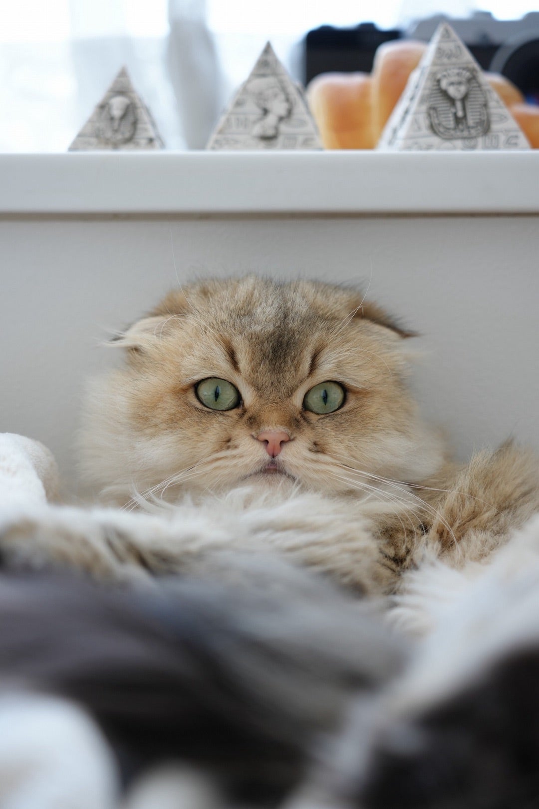 ピラミッドの置物と一緒にコロン椅子でもふもふしてるレオくんに、 ピュリナワンのチキンペーストのおやつが来ましたよ。 袋は大きめだけど中身は4本。 (5本くらい入ってると思ったんですけど。) 切れ目から開けたら出口は思ったより小さかったですね。 ちょっとずつしか出ないので、ゆっくりペロペロします。 レオくんは食に関してはのんびりしてるから、このペースでちょうどいいみたいですね。 だんだん舌が速くなってきてペロリン。 ひととおり舐め終わったらしょっぱい顔でペロリとして、 上にもペロリン。 レオくん「そこそこおいしかったです♡」 気になるお味の感想は正直なレオくんでした