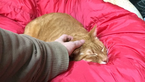 暁璘のデータを見返してて気づいたシリーズで、「猫が大好きな寝具」がありました。それは「寝袋」です。元々は以前勤めてた会社で使うのに買ったもので、使い所なくたまには干すかと思って布団乾燥機に当ててたら麿白時雉参瑚がえらい食いついたのでした。やあ、ここは実に快適だね。このシャカシャカ触感がたまらないね。その感じと中に入れるのとぬくぬく具合と、猫が好む要素を何気に全部持ってる寝袋。それでこれは猫用にいいなと思ってると嘔吐されるわけです。おいらも気に入ったやい。麿白時雉で中で猫団子してました。嘔吐されましたが。窓辺の日の当たるところに置いとくとこんな感じで謎寝相の寝床に。猫ベッドもこの寝袋触感だと食いつきいいんじゃないでしょうか。爪などの耐久性が課題になるか。それで外に干して忘れてたら野良猫がくつろぐようになり、さらにスプレーされてひどい匂いになり使えなくなるという顛末でした。あんまり触感が良すぎても難儀ですね。あと、暁璘なら絶対に噛んで穴を開けてます。