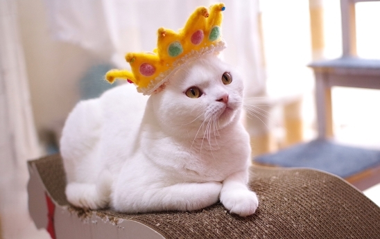 おもち君の誕生日用撮影の為に(誕生日は30日だよ)羊毛フェルトで簡単な王冠を作りました『白馬じゃなくグレー猫に乗った王だよ』誕生日用にリボンのついたスタイも買ったのですが・・・かぶるタイプで ←気づいて無かった顔と首が太いおもちにはちょっとキツかった早めに撮影会をしようとソファーの所に白い布やお花を乗っけてセッティング。するとやっぱりやって来たわ(笑)退かないwチョコ『撮影会でしょ?早くオヤツの用意して』チョコにはサイズピッタリでしたよ。◆◇◆◇◆◇◆◇◆◇◆◇◆◇◆◇◆◇◆◇◆◇◆◇◆花柄のカーテン布から撮影の為だけ白い布に変えたのですが、それでもまたあんこが潜って白い布はちょっと薄めだからモゾモゾするとよりわかるんですよ。そしたらおもち君大興奮。鼻息が聞こえるくらい興奮wwこの後も散々布上から攻撃してましたよー。しばらく経ってあんこも居なくなったのでいつものカーテン布に交換したら珍しい!!おもち君が潜りに来たんですすると速攻やってくるあんこ( ´∀` )絶対さっきの仕返しですよ(爆)あんこは何度も凄い勢いで攻撃されてても何も言わなかったけど、おもちは上から押さえつけられるだけで「シャー」連発シャーシャー唸ってるので大笑いしちゃいましたwすると突然おもちが出て来たーー!!怒り爆発したようにあんこを攻撃します。そこから本気モードのバトルが開始。毛が抜けるほど凄い勢いでしたよー。本気