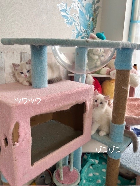 今日はマルチの手術日。マルチは赤ニャンの時から食いしん坊さんだったから術前の絶食もつらいよね・・無事に手術が終わりますように。マルチ、頑張ってね。☆;+;。・゚・。;+;☆;+;。・゚・。;+;☆;+;。・゚・。;+;☆;+;。・゚・。;+;☆小さい時からどこか似てるツクツクとゾンゾン。似てるけど、写真の撮りやすさナンバーワンのツクツクと写真の撮りやすさ最下位のゾンゾン(;'∀')対照的なふたりです。ゾンゾンは目線を無視した写真なら撮影できるんだけどね(;'∀')今日はお天気が悪いけど兄弟みんにゃを撮影したいからがんばってジャラシを振ってるはなぴん。ファンファンはもう寝てたんだけど撮影したいのでむりやり起きてもらいました。ボーっとしてるファンファン。・‥…━━━☆・‥…━━━☆・‥…━━━☆・‥…━━━☆☆スンスン☆☆ノンノン☆☆ゾンゾン☆☆ファンファン☆☆ツクツク☆(見学予約が入ってます)みんにゃ、階段の上り下りがとても上手になり居間も慣れたみたいです。居間で過ごしてる様子を撮影したいけど速すぎて撮影できない(>_<)・‥…━━━☆・‥…━━━☆・‥…━━━☆・‥…━━━☆まぼほぺ親子。いつも近くにいる親子です。朝のほっぺたん。ほっぺたん、シエルパパにお返事をしてます(*´▽`*)******************************3月3日生まれのこりゃるちゃ