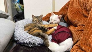 釿汰の自宅での皮下輸液を開始しました。やる前はかなりだるそうで体が動かないようでしたが、輸液をやると少し和らいで引き戸の入り口まで迎えにきたり膝上に乗りに来るようにもなりました。初手から膝上に来る釿汰。チャー坊も何気に輸液中に動き回ることも...
