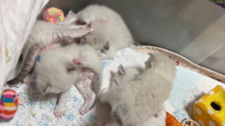 ラグドール 今日の子猫達~ゴム紐は緩く長く~