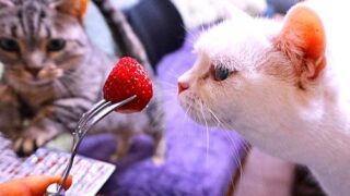 主のほうをじっと見てるルナとラム。主の食べてるイチゴを見てたのね?www食べるのかと思ったけど、匂い確認しただけだった。イチゴだけじゃなくて、あちこち匂い確認。猫の確認方法の一番はやっぱり匂いなんだね!ちょっとした模様替えをしたら、早速確認...