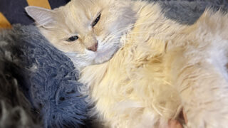 美味しそうに食べてる。ふたりとも、「早く!ちょうだい!」と、グイグイやってくる。本日のは、こちら~。初めて食べたね。買ったこと無かったから。普通の ちゅ~ると違って、ゼリー状なので、食いちぎってくれないと床に落ちる。目を瞑って味わってるリリ...