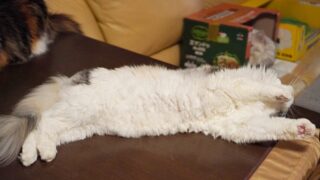 メイン・クーン 場所はなくともつられてしまう・・・ こんにちは10月になっても変わらずテーブルは我が陣地とでも思っているかのようなシンディですなんてのびのびと過ごしているのでしょうその向こうにはこれまたいつもテーブルの相方 アリエルでもシンディがどーんと斜めに寝ているので文句があるのかこの表... 2025.10.03 メイン・クーン