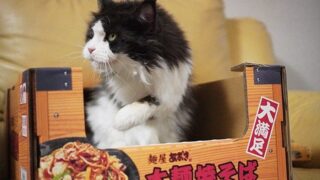 メイン・クーン 大満足のお返事 こんにちは先日コスコトへ行った時に頂いて来た空き箱我が家最新作ですw太麺焼きそばこの商品食べた事はありませんがこのプリントされた焼きそばの写真と文字だけで食べたくなります最初に入ったのはジャスミン丁寧に毛づくろいが続きますそんな様子を見てい... 2025.10.15 メイン・クーン