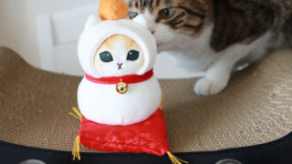 あっという間に鏡開きですと。今年も飾ったもっちり鏡餅にゃんのぬいぐるみの橙部分を狙っているアミ姐さん。ボールじゃないから!なんて言っているところにやっぱり橙狙いのユウも登場。取れないから嗅ぐだけね。ぬいぐるみ好きに持ち去られないように鏡餅に...
