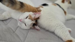 アメリカン・ショートヘア 二人のお顔 トンちゃんしっぽに1㎜タッチにゃむ いっつもむーちゃんが付いてくるですぅだってトンちゃんスキにゃむ まぁいいですぅだってトンちゃん遊んでくれるにゃむ 知ってるですぅでも今日はバイですぅママずっと見てるにゃむねヒトリに... 2025.09.22 アメリカン・ショートヘア
