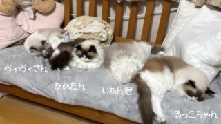 朝掃除するのに部屋に行くとどーんとかまえてるほっぺたん。はなぴんの近くにはれおん君。綺麗な目を撮影したいのに・・目がパッチリ開きません💦このあと、れおんははなぴんと一緒に一階へ。全く似てない息子と一緒に動画鑑賞。オルくん、このしっぽが可愛す...