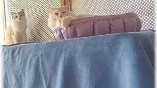 ソウ君この後 爪とぎポールを上ってきますアミちゃん  食べること以外は おっとりローズちゃんとアミちゃんローズちゃんとソウ君下の段にアミちゃんがいて みんな一緒いつまでも付き合ってくれるソウ君      後ろに ロッちゃんreeが買い物に行...