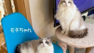 ラグドール 真っ白にゃん、とPちゃんジャンプ